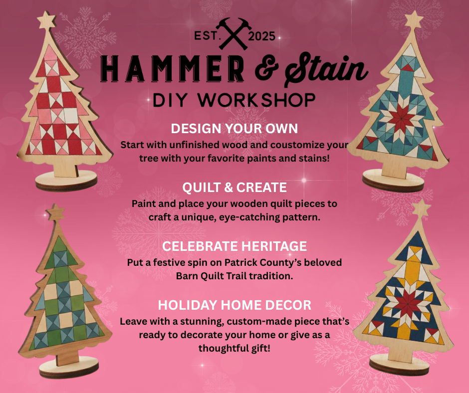 Get ready for a heartwarming and creative holiday session! Join us for a unique workshop where we’ll combine traditional folk art with festive flair as we create Barn Quilt Christmas Trees!